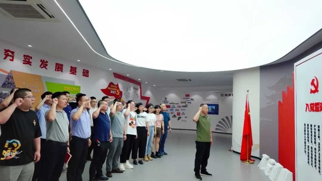 “我志愿加入中國(guó)共產(chǎn)黨……隨時(shí)準(zhǔn)備為黨和人民犧牲一切,永不叛黨。”在興發(fā)展廳全體黨員高舉右手,面對(duì)鮮紅的黨旗,重溫入黨誓詞,在鏗鏘有力的誓言聲中,黨員們的初心受到洗禮,理想信念愈加堅(jiān)定。