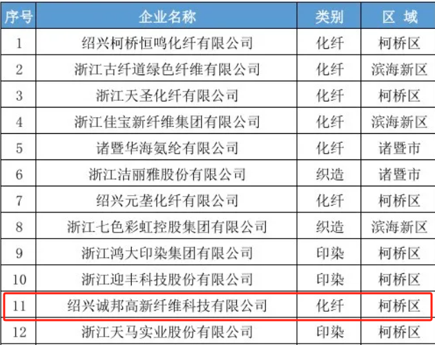 其中,誠(chéng)邦高新纖維憑借技術(shù)實(shí)力和市場(chǎng)表現(xiàn),成功入選紹興市紡織工業(yè)“100強(qiáng)”。