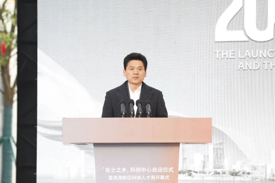 活動由濱海新區(qū)管委會副主任丁浪萍主持。謝國民部長在致辭中熱烈祝賀“名士之鄉(xiāng)”科創(chuàng)中心的啟運及科創(chuàng)人才周的開幕。他強調(diào)了教育、科技、人才在中國式現(xiàn)代化進程中的關(guān)鍵作用,并指出濱海新區(qū)是紹興市加快培育發(fā)展新質(zhì)生產(chǎn)力,推動經(jīng)濟高質(zhì)量發(fā)展的主陣地、主戰(zhàn)場。以“民建公助”模式與民營企業(yè)、高校院所聯(lián)合共建的“名士之鄉(xiāng)”科創(chuàng)中心體現(xiàn)了濱海新區(qū)堅持“產(chǎn)才融合”路徑,扎實推進教育科技人才一體改革的鮮明導(dǎo)向。希望新區(qū)圍繞打造“大灣區(qū)強勁活躍增長極、產(chǎn)城融合示范區(qū)”目標,依托“名士之鄉(xiāng)”科創(chuàng)中心、科創(chuàng)人才周等對接交流平臺載體,深化科技體制和人才發(fā)展體制機制改革,進一步構(gòu)建具有國際競爭力的創(chuàng)業(yè)創(chuàng)新生態(tài)體系,為科技創(chuàng)新、人才發(fā)展搭建更加廣闊的舞臺。